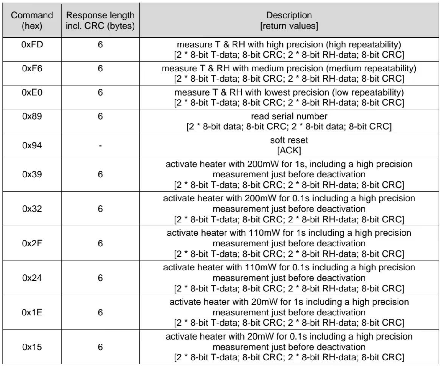 5、加熱器一旦啟用就會產生大量電流(最高可達75mA)。雖然專用電路能平穩地吸收電流,但電源功率必須足夠大,以避免電壓過低而引起的傳感器復位。如果需要更高的加熱溫度,則必須向傳感器發送連續的加熱命令。加熱器只能在低于65℃的環 境溫度下工作,否則會使傳感器超出其最高工作溫度。